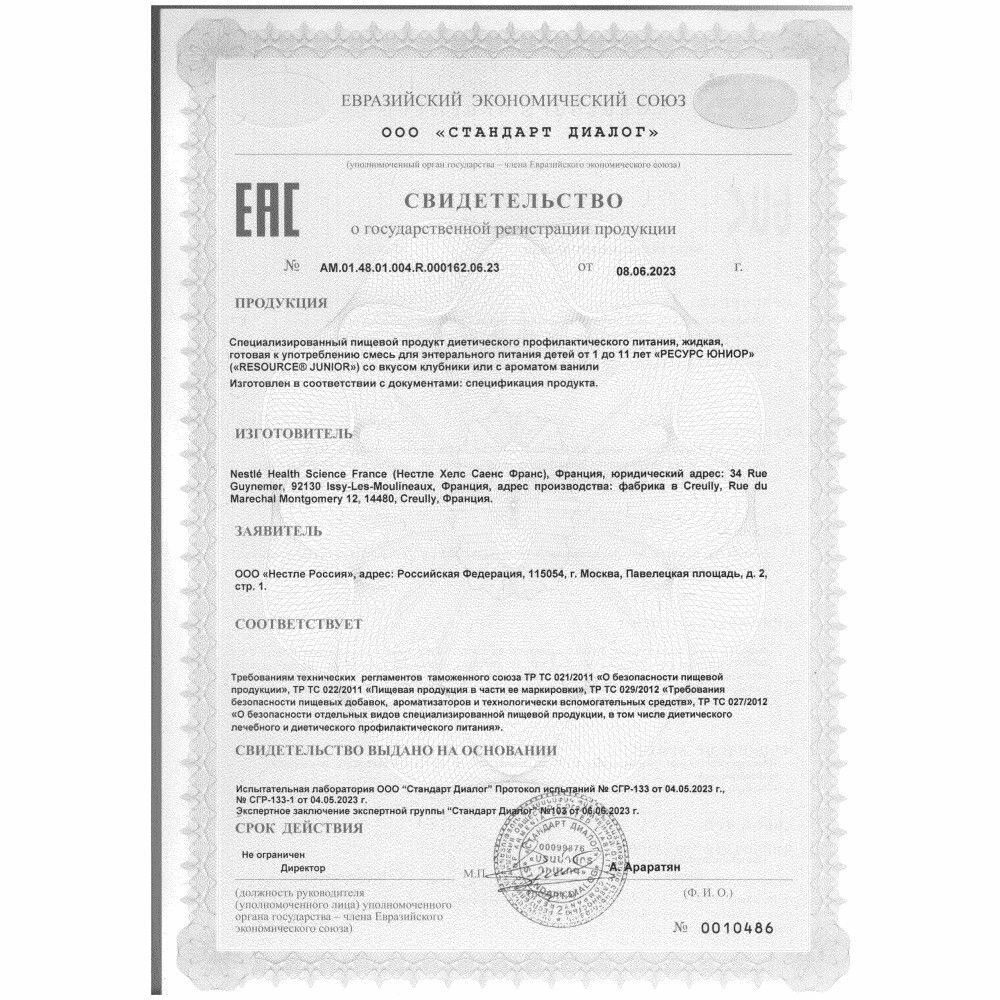 Смесь Nestle Ресурс Юниор с 1-11 лет со вкусом клубники 200мл 6 шт информация:
