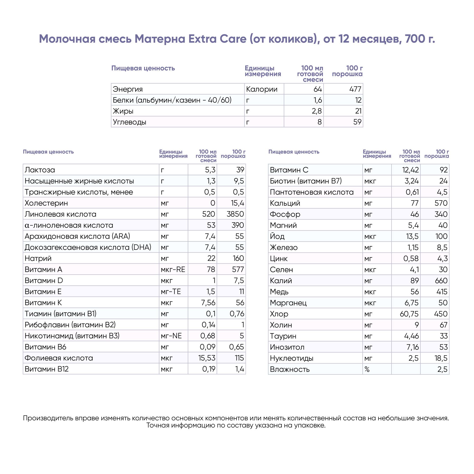 Materna Молочная смесь Матерна Extra Care, от 12 месяцев, 700 г. информация: