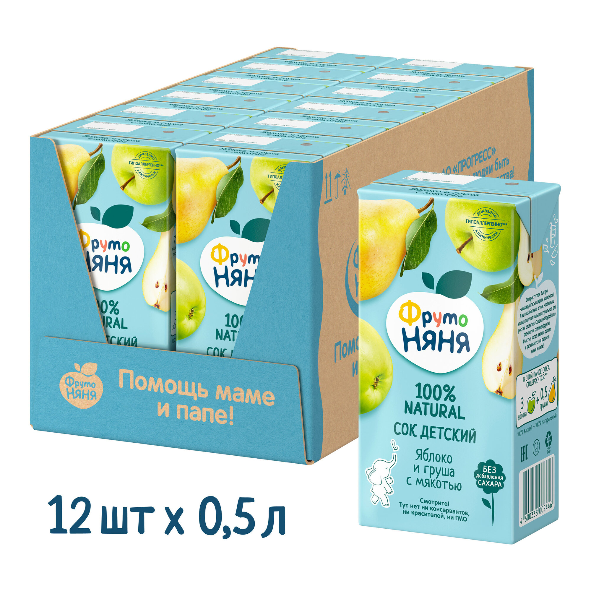 Сок ФрутоНяня яблоко, груша с мякотью, с 3 лет, 0,5 л, 12 шт, информация: