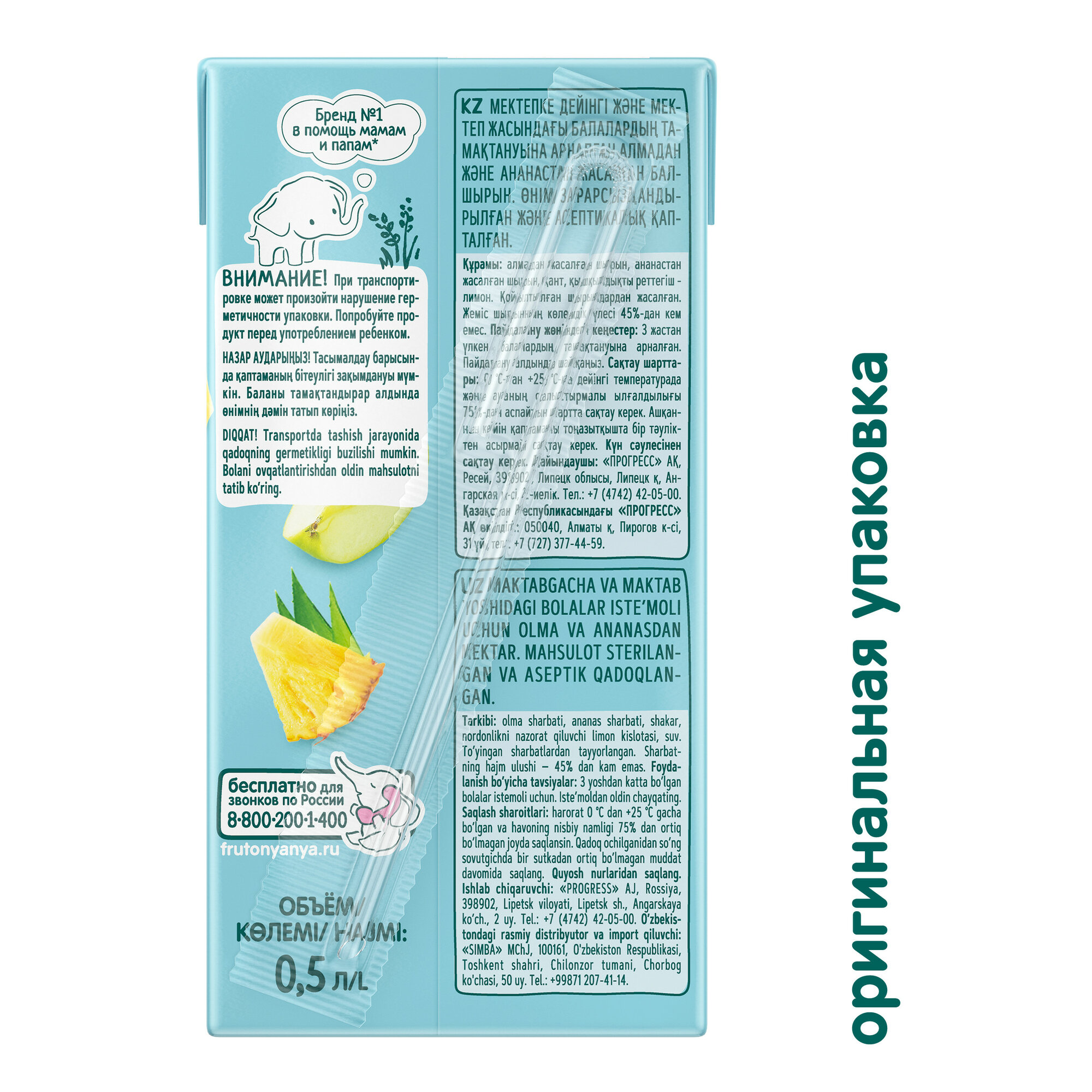 Нектар ФрутоНяня яблоко, ананас, с 3 лет, 0,5л, 12 шт информация: