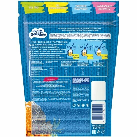 Чай детский Когда Я Вырасту гранулированный Облепиха с Медом с 9 мес 85 г информация: