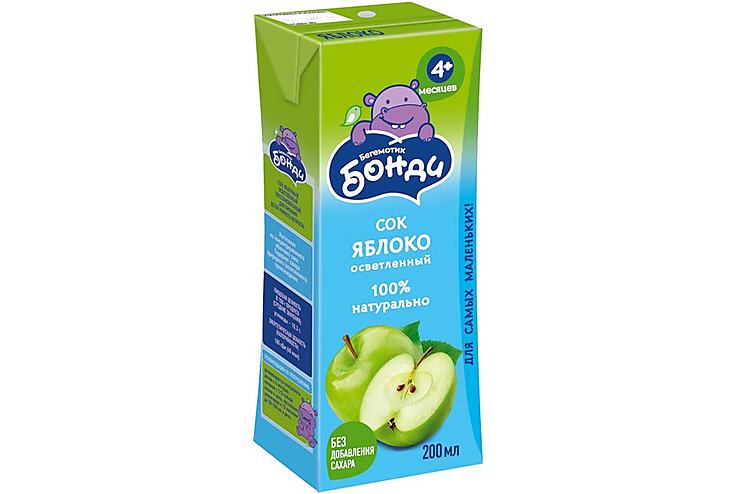 «Бегемотик Бонди», сок «Яблоко осветленный», 0.2л, 10 штук информация: