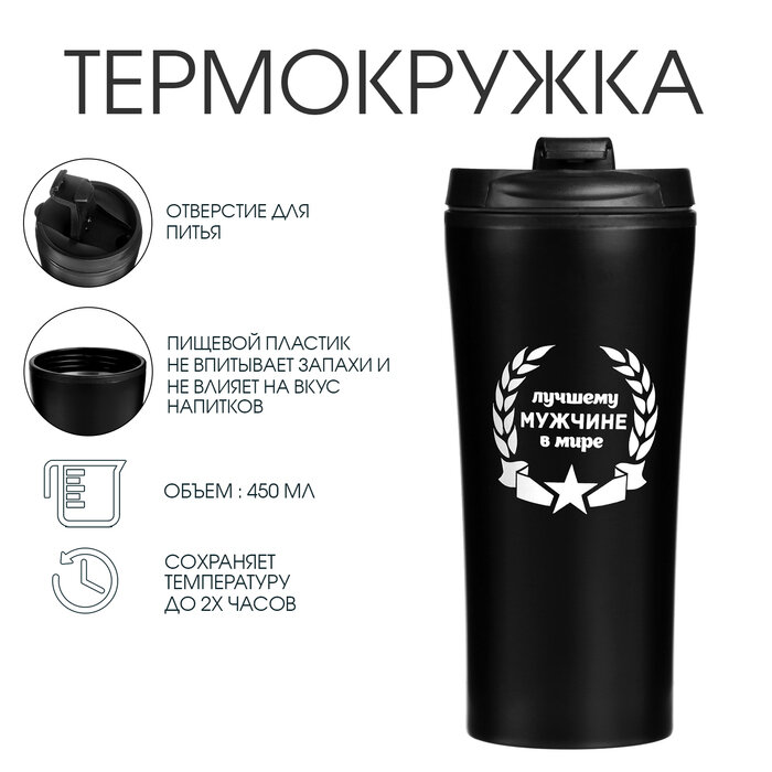 Термокружка, 450 мл, «Лучшему мужчине в мире», сохраняет тепло 2 ч, 8×19 см информация:
