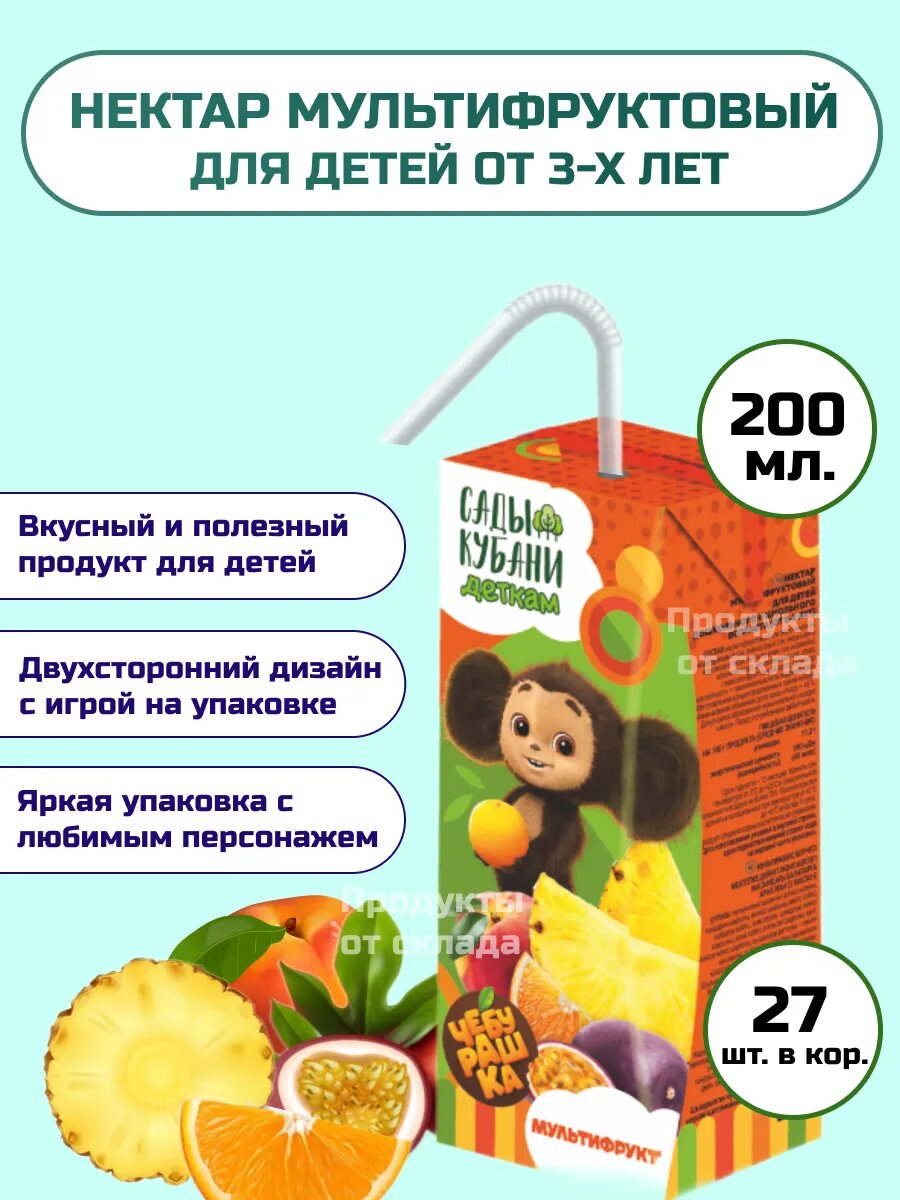 Сок детский Мультифруктовый Чебурашка, 200 мл, 27 штук информация: