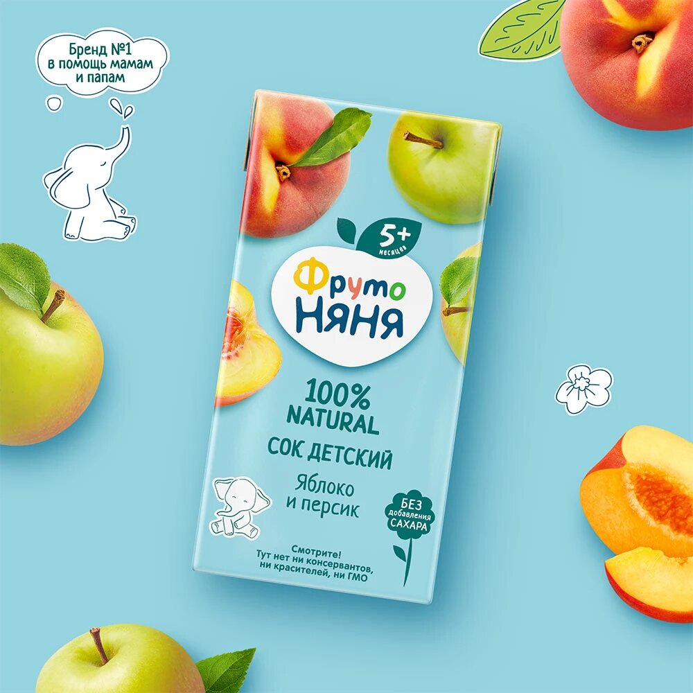 Сок ФрутоНяня из яблок и персиков с 5 месяцев 0,2 л 15 шт информация:
