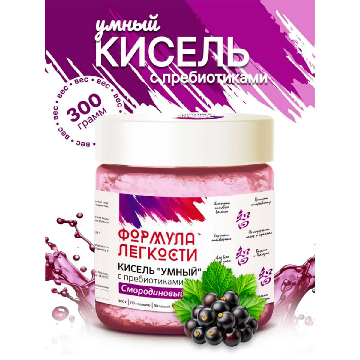 Кисель «умный» с пребиотиками, Смородиновый, 300г, Формула легкости информация: