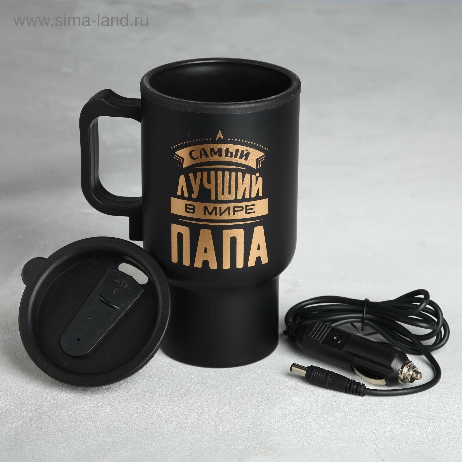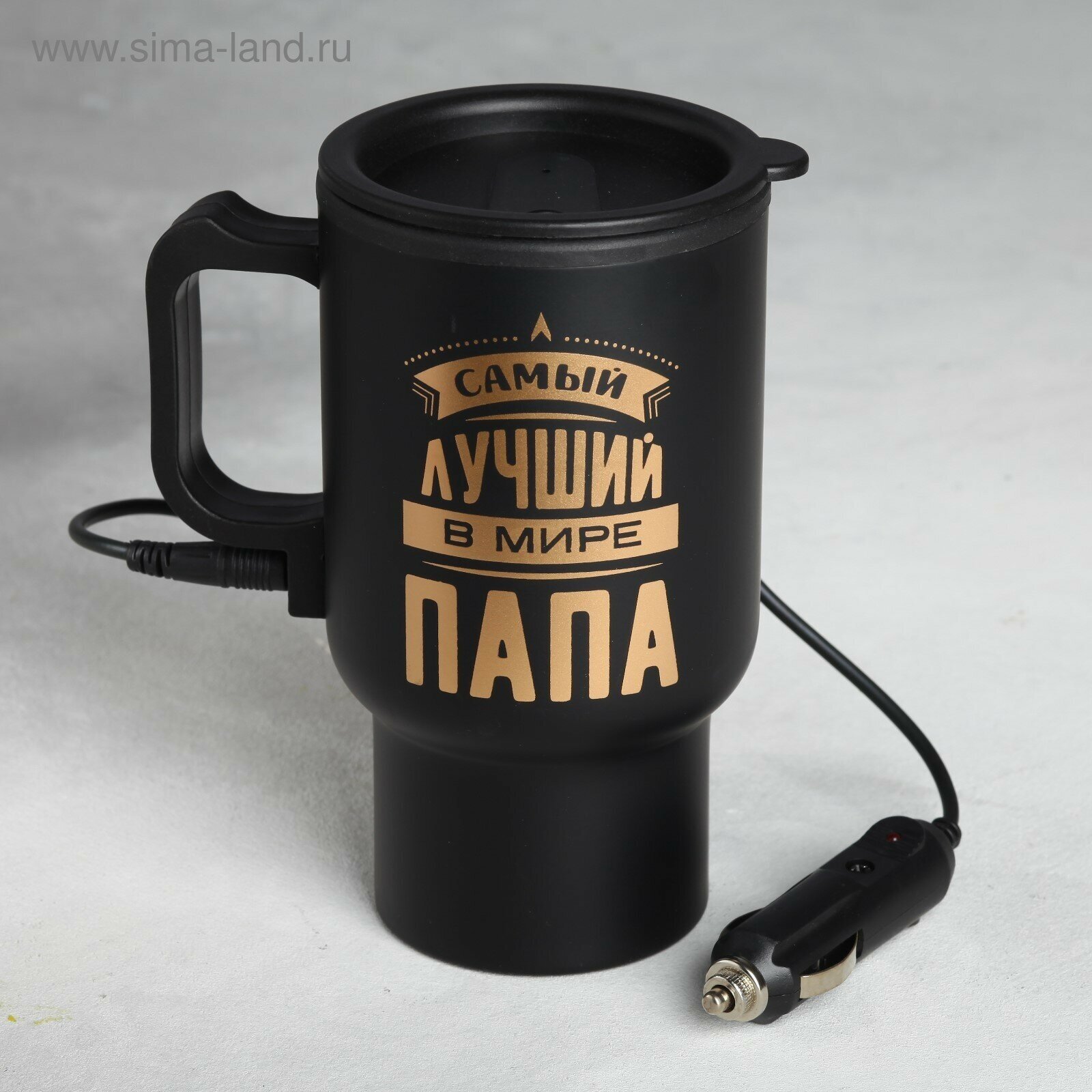 10 цен на Термокружка с подогревом от прикуривателя «Самый лучший в мире папа», 450 мл, сохраняет тепло 3 ч