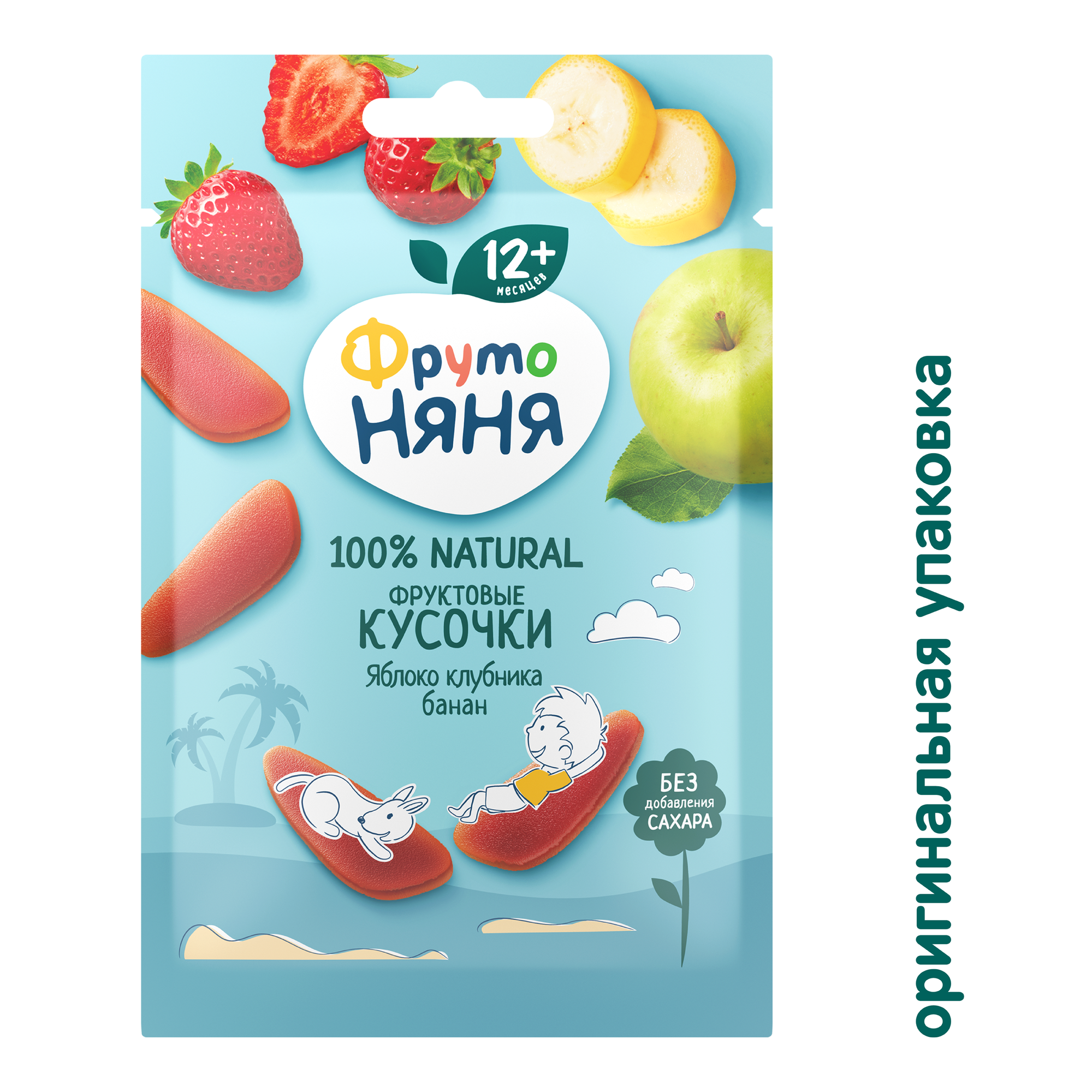 Фруктовые кусочки ФрутоНяня яблоко, клубника, банан, 15г, 10 шт информация: