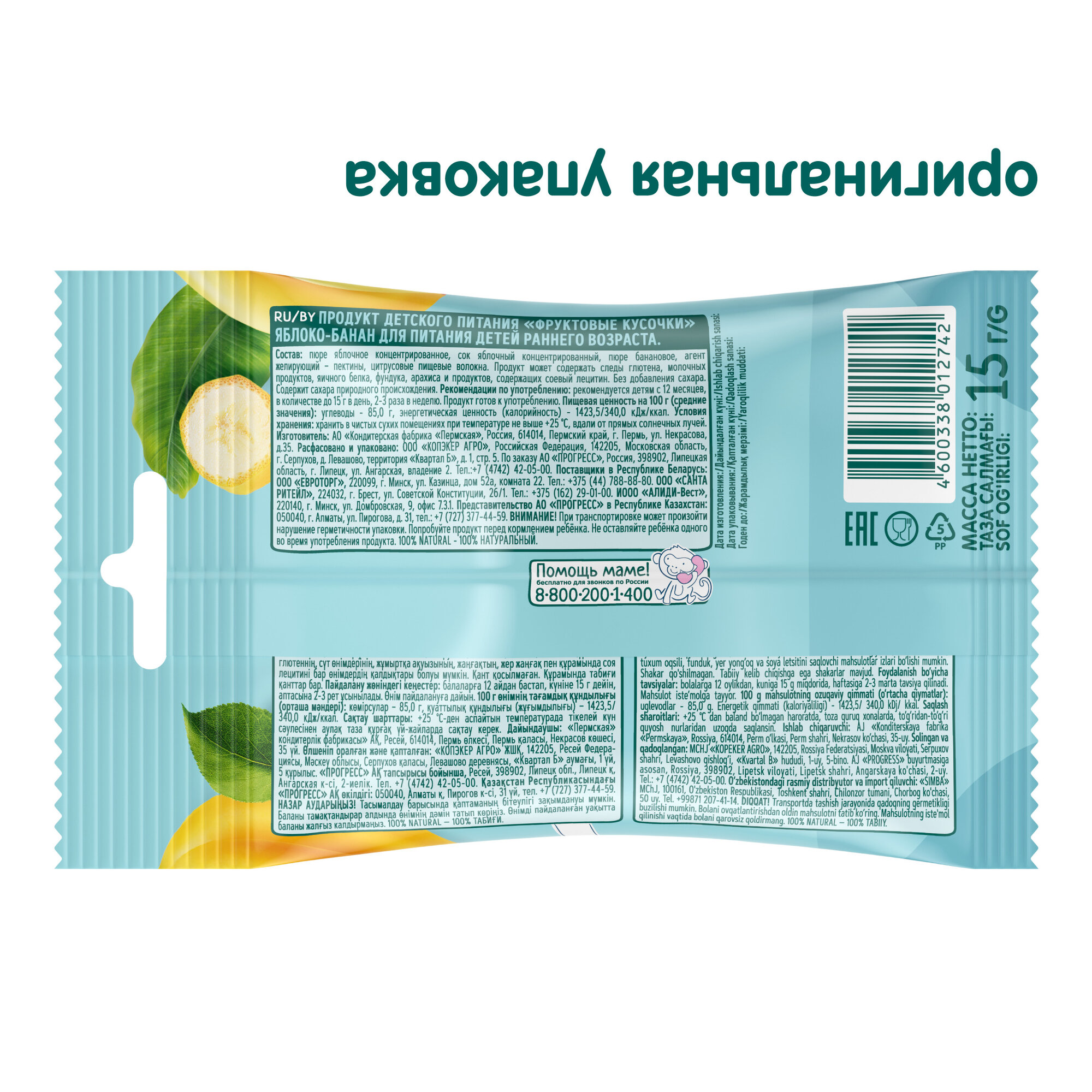 Фруктовые кусочки ФрутоНяня Фрутохвостики яблоко- банан, 15г, 8 шт, информация: