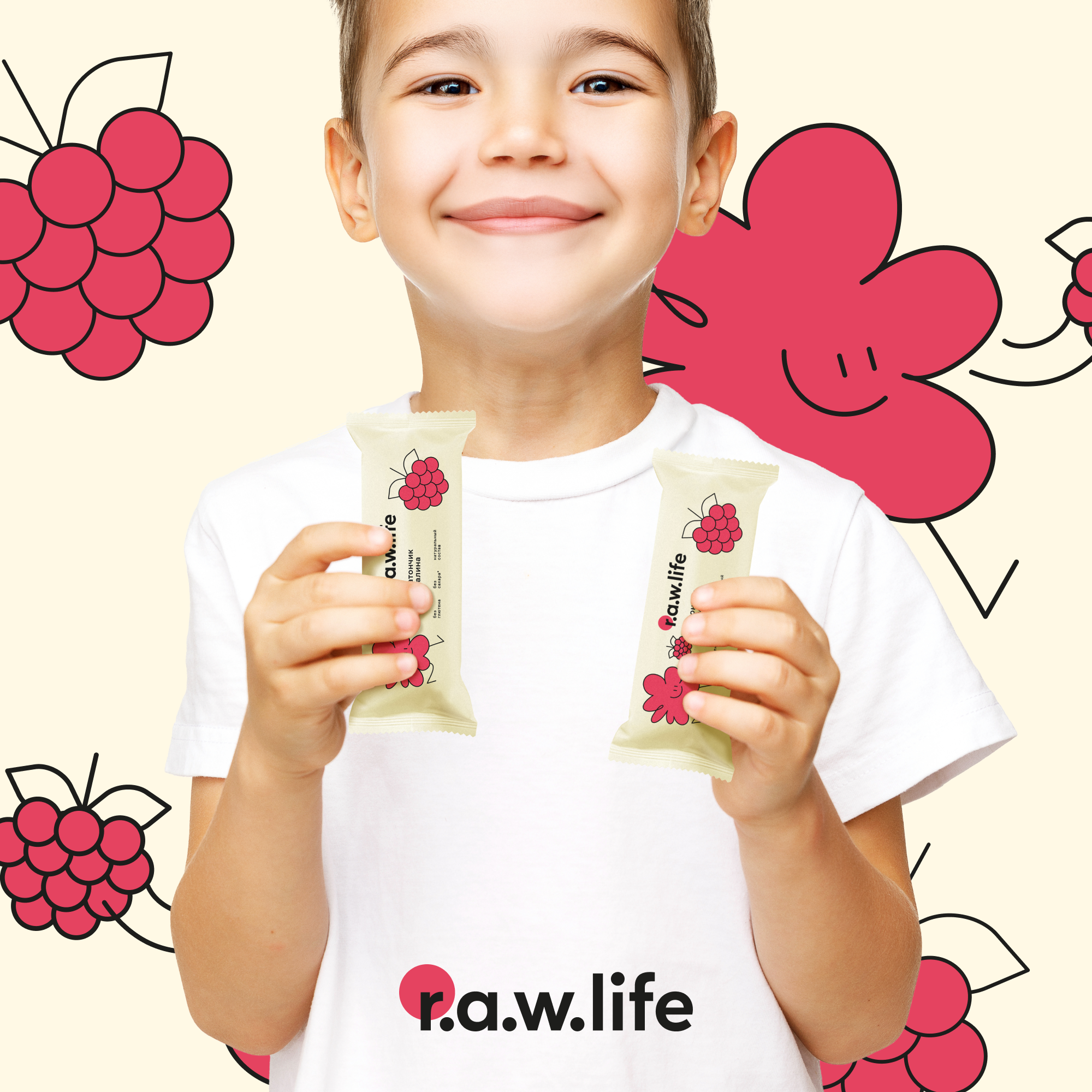 Детские фруктово-злаковые батончики без сахара и глютена R.A.W.LIFE Роулайф, малина, 12шт по 33г информация: