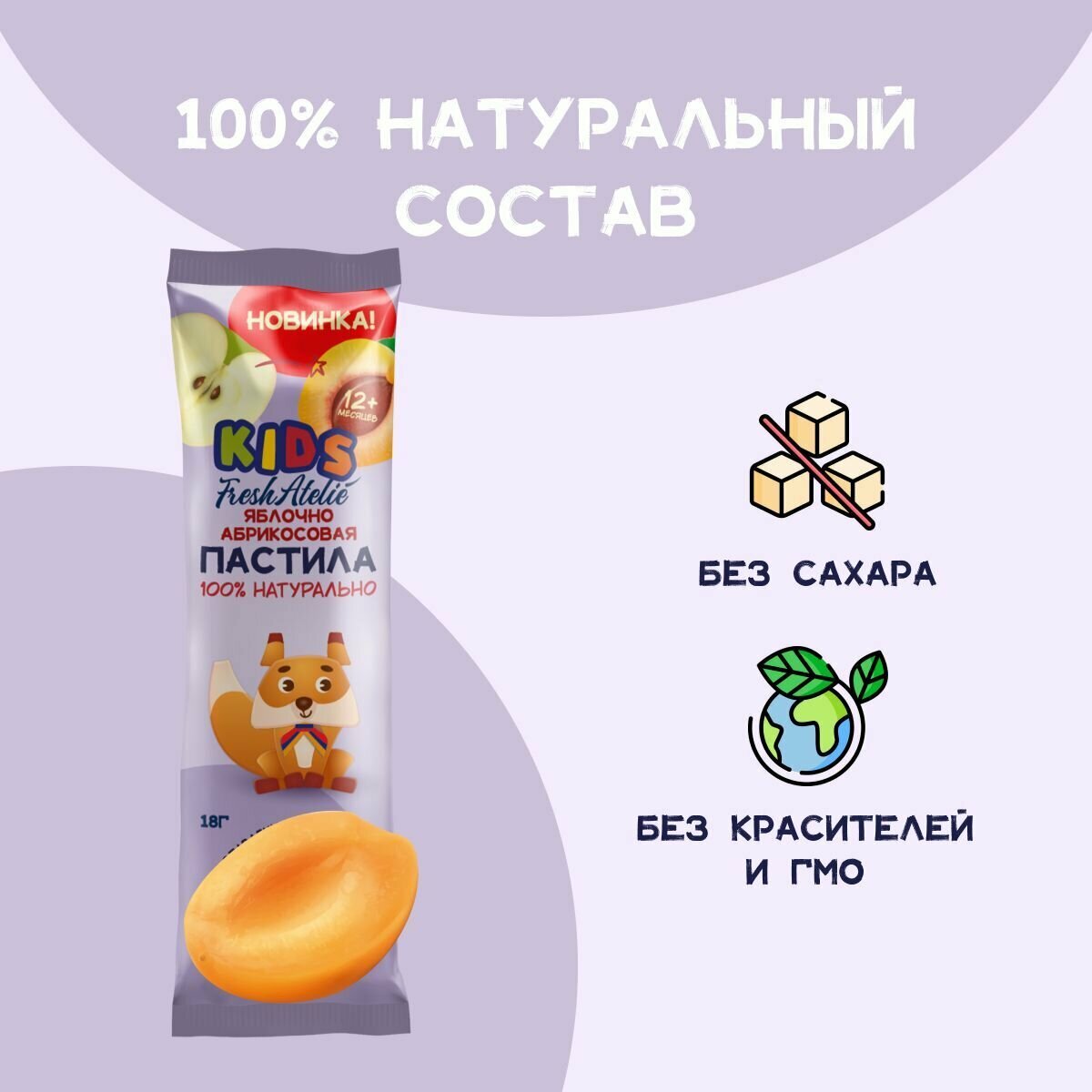 Пастила Fresh Atelie KIDS Пластинка для детей с 1 года, Яблоко-абрикос, шоубокс 18 г x 16 шт, без сахара информация: