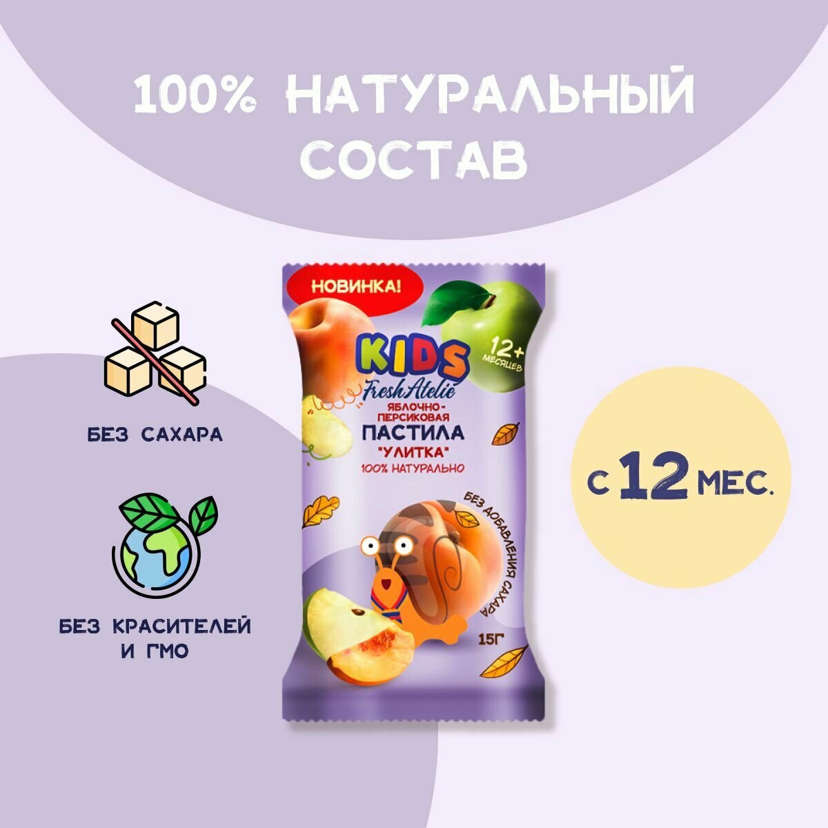 10 цен на Пастила Fresh Atelie KIDS Улитка для детей с 12 мес, Яблоко-персик, шоубокс 15 г x 20 шт, без сахара
