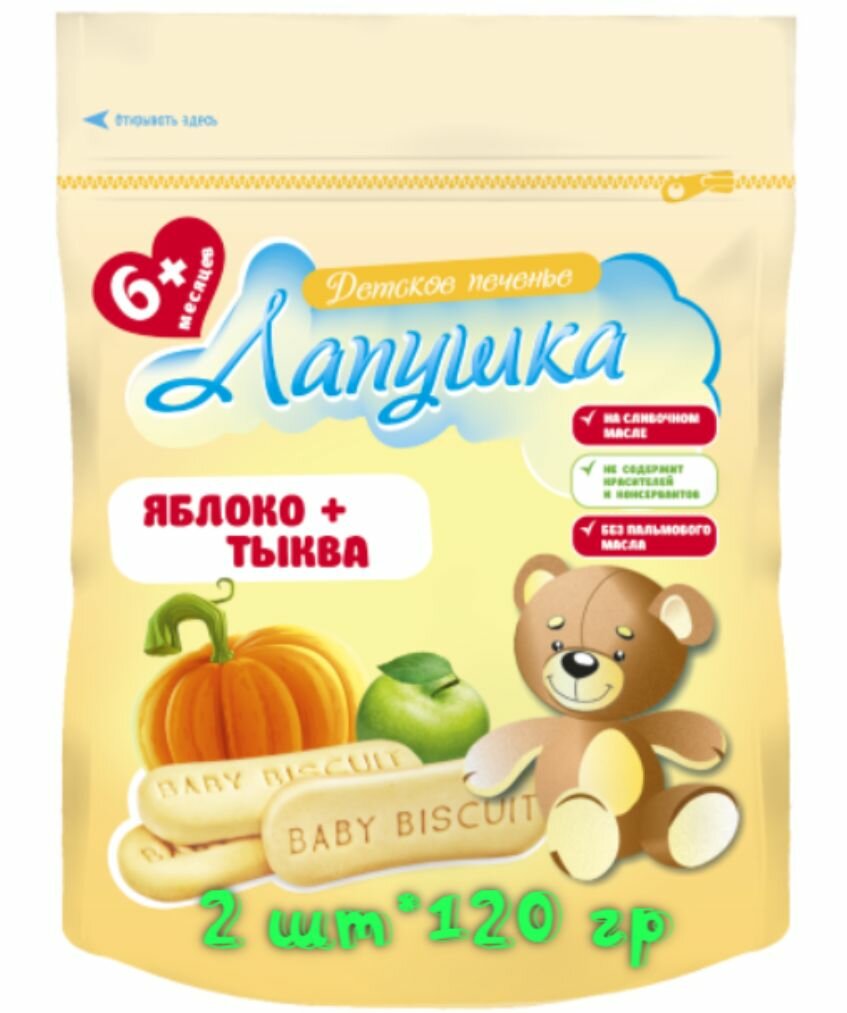 Печенье детское растворимое "Лапушка", яблоко + тыква, 2 шт*120 гр информация: