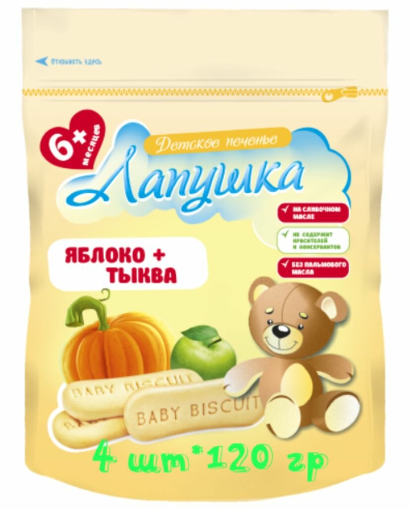 Печенье детское растворимое "Лапушка", яблоко + тыква, 4 ш*120 гр информация: