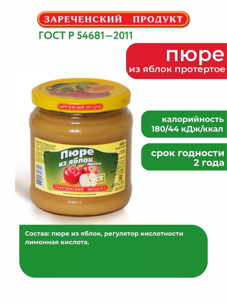 Пюре из яблок протертое 450 грамм 2 шт информация:
