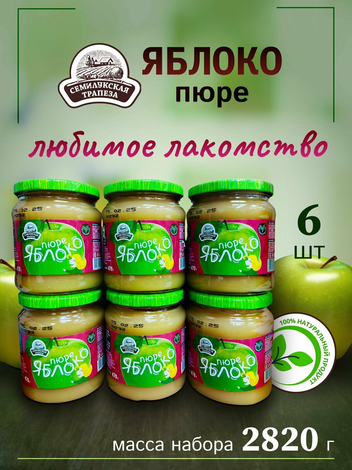 Отзывы на Пюре Яблочное 6 банок по 470гр. Семилукская трапеза Натуральный состав