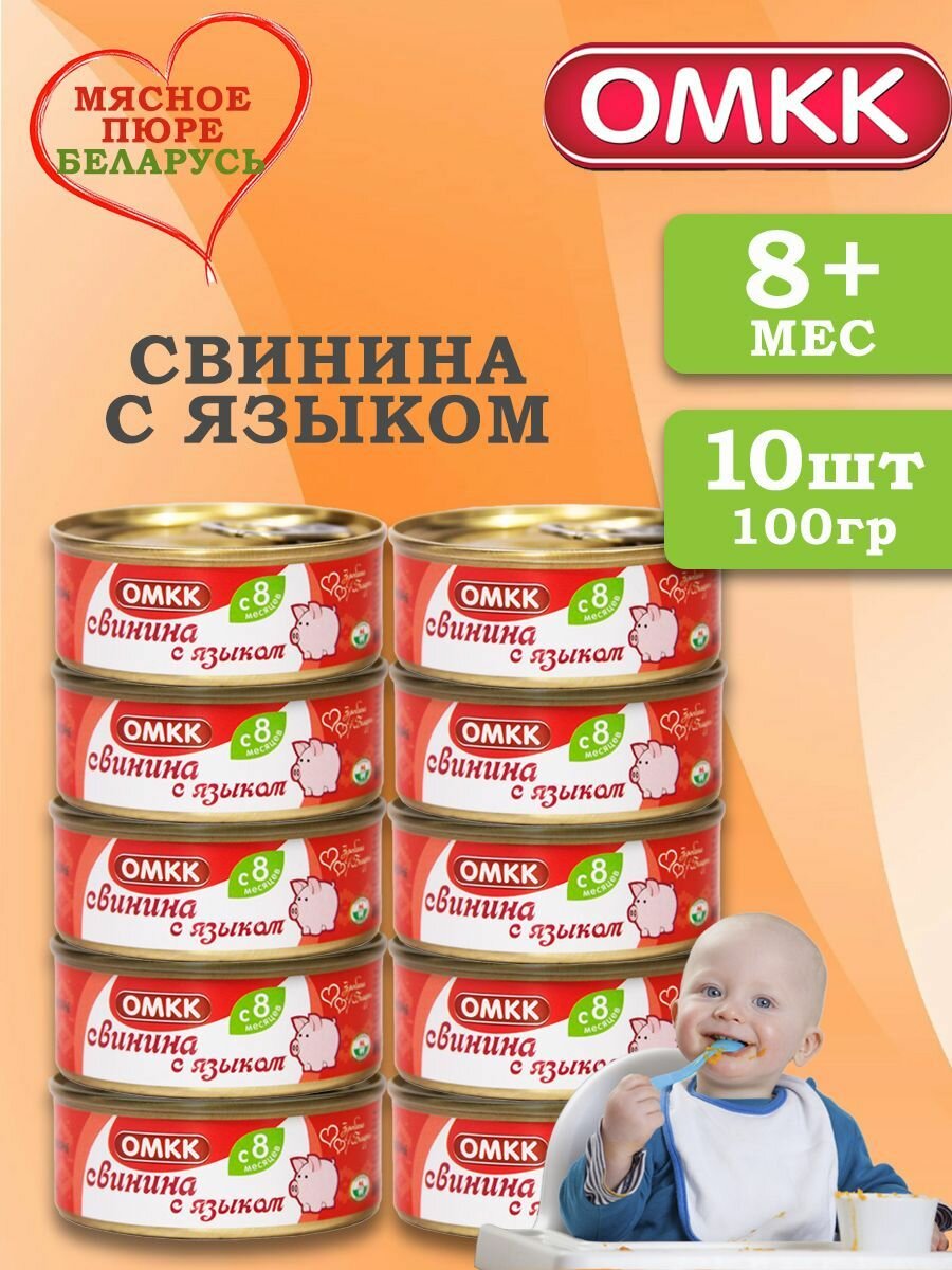 10 цен на Детское пюре мясное Свинина с языком 100 гр 10 шт