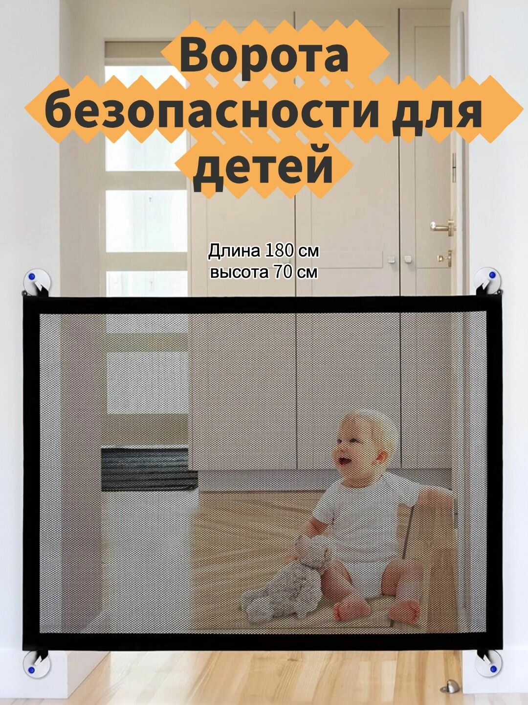 Ворота безопасности для детей / Сетка-перегородка для собак, 180x70см. информация: