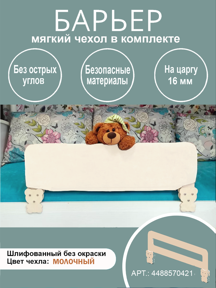 Бортик на кровать от падения, деревянный, съемный мягкий чехол 3 000 ₽
