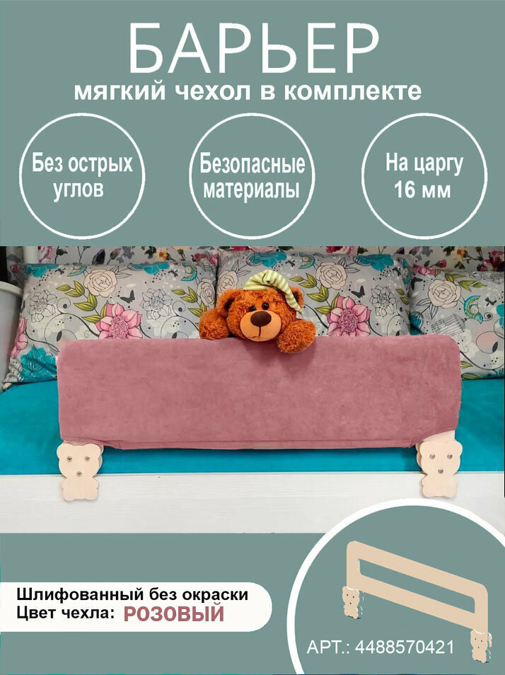 Бортик на кровать от падения, деревянный, съемный мягкий чехол 3 000 ₽