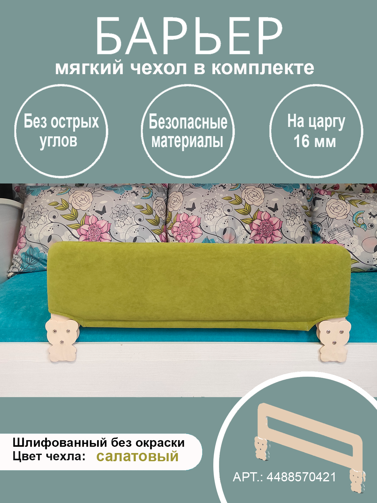 Ограничитель для кроватки "Расти здорово", 26х78х1,6см, дерево, мягкий чехол, съемный информация: