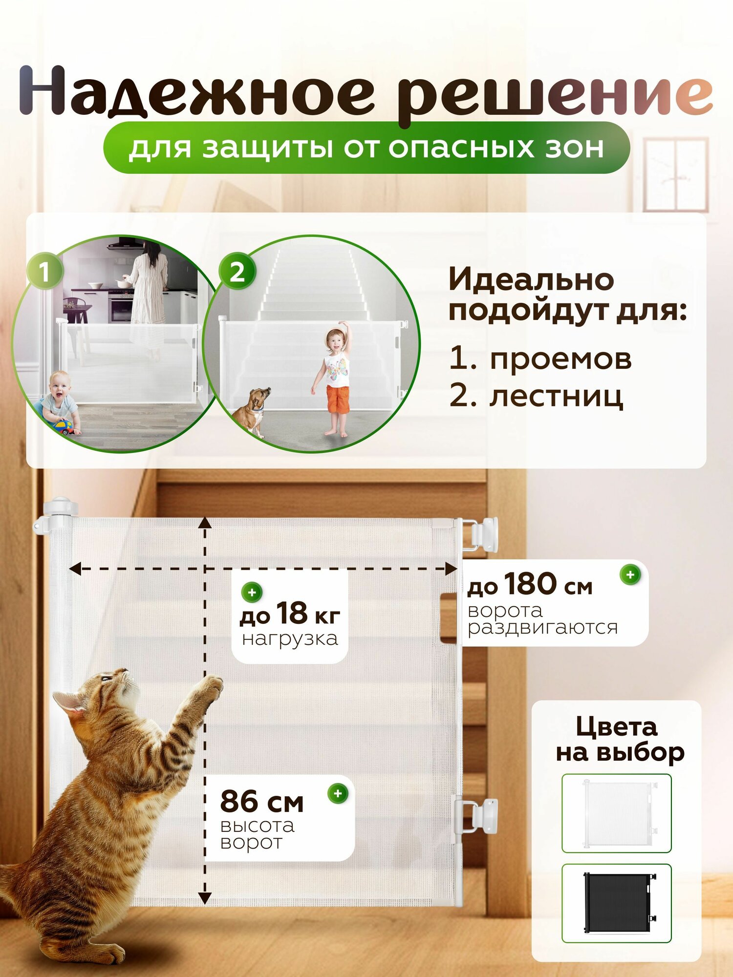 10 цен на Раздвижные ворота безопасности для детей и животных 86х180 см для лестниц и дверных проемов