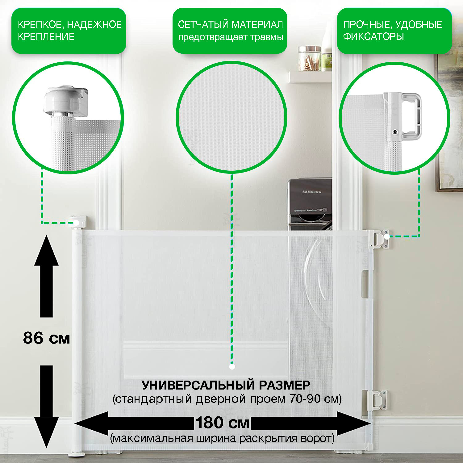 Раздвижные ворота безопасности для детей, собак и других животных. Защитный барьер калитка. Ограждение-вольер на дверь, лестницу, проемы информация: