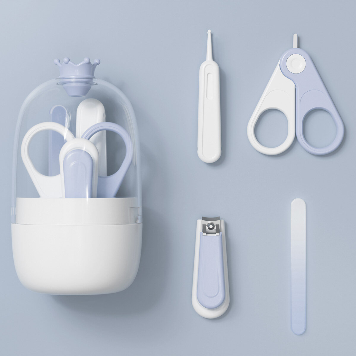 Набор по уходу за ребенком, 5 предметов: расческа, пинцет, ножницы, книпсер, пилка, голубой