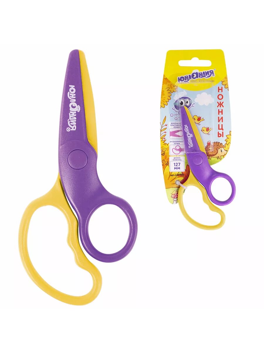 Ножницы детские Юнландия, безопасные, пластиковые лезвия, эргономичные ручки, длина 127 мм информация:
