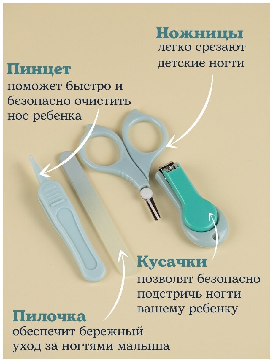 Набор по уходу за ребенком, 5 предметов: расческа, пинцет, ножницы, книпсер, пилка, голубой