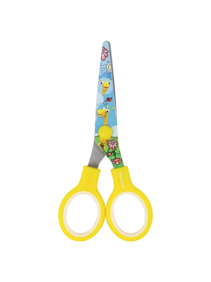 Ножницы 130 мм с цветной печатью "жирафы", жёлтые, за - 12шт информация: