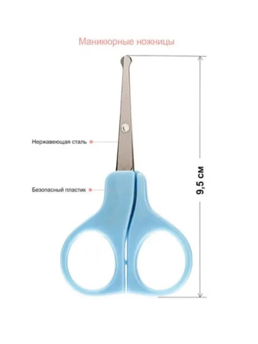 Набор по уходу за ребенком, 5 предметов: расческа, пинцет, ножницы, книпсер, пилка, голубой