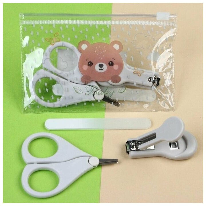 10 цен на Детский маникюрный набор для самых маленьких "Мишка": ножницы с закругленными кончиками, щипчики и пилка для ногтей