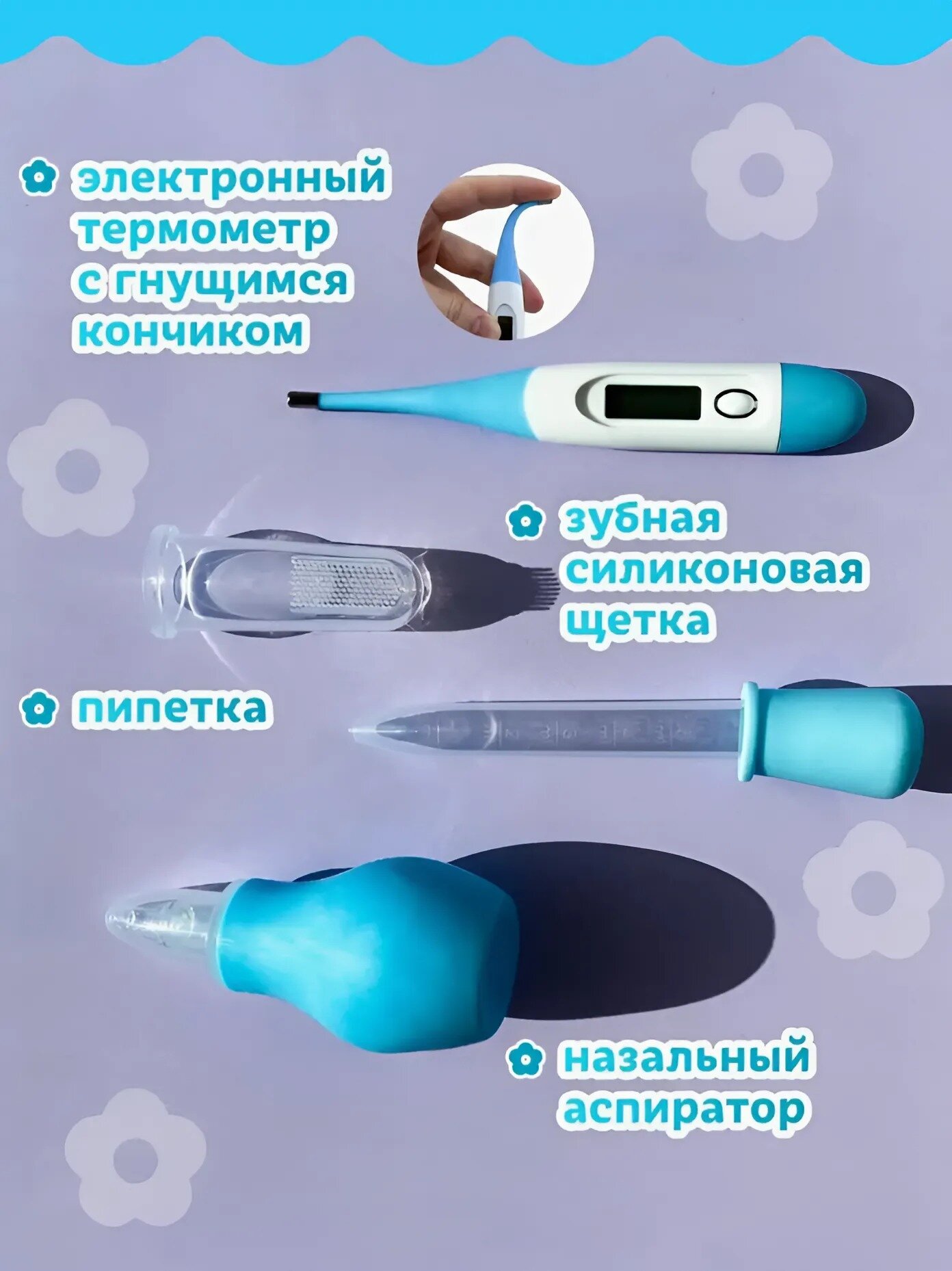 Набор для ухода за новорожденным 10 предметов, голубой информация: