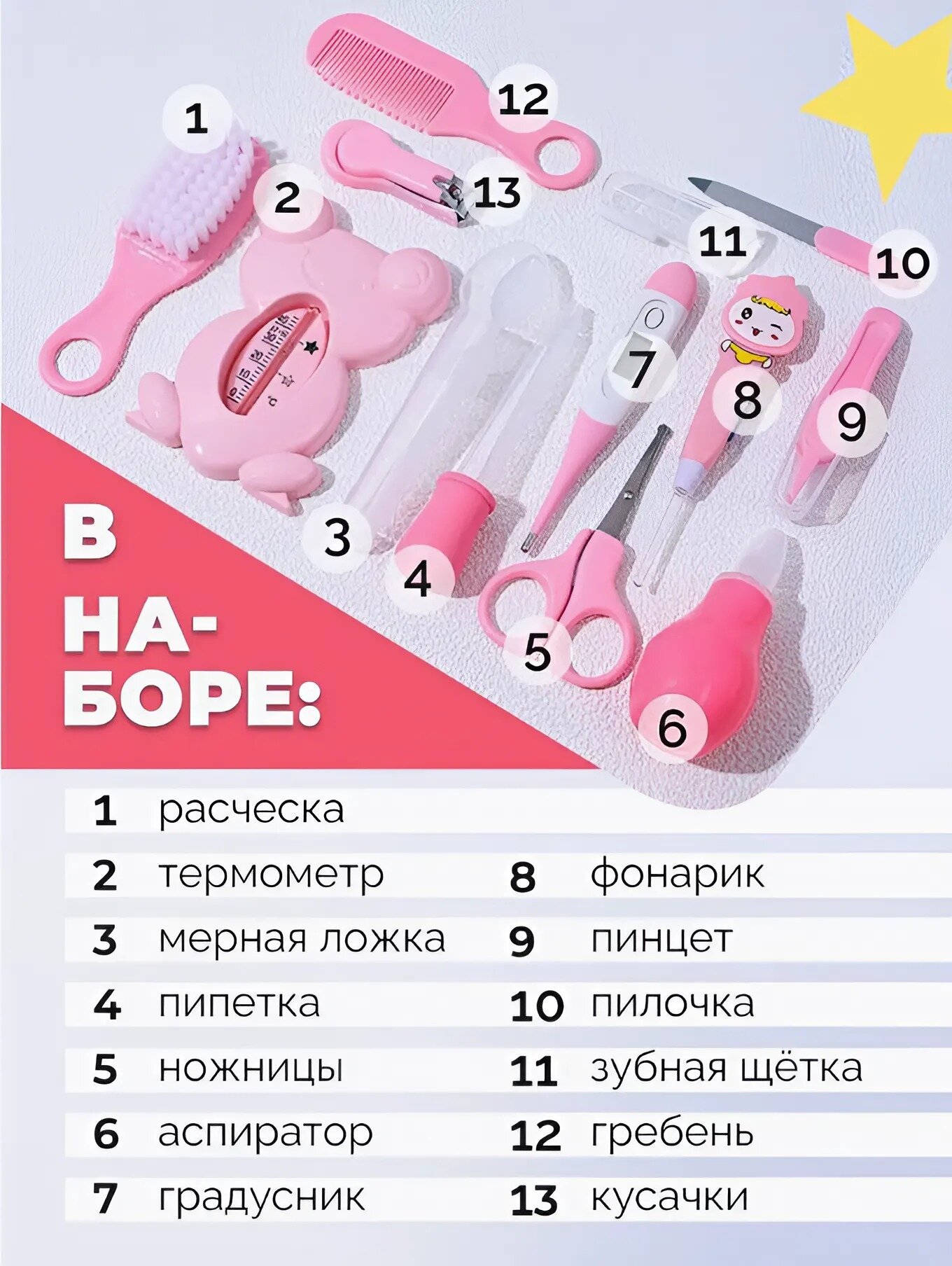 Набор для ухода за новорожденным 13 предметов, розовый информация: