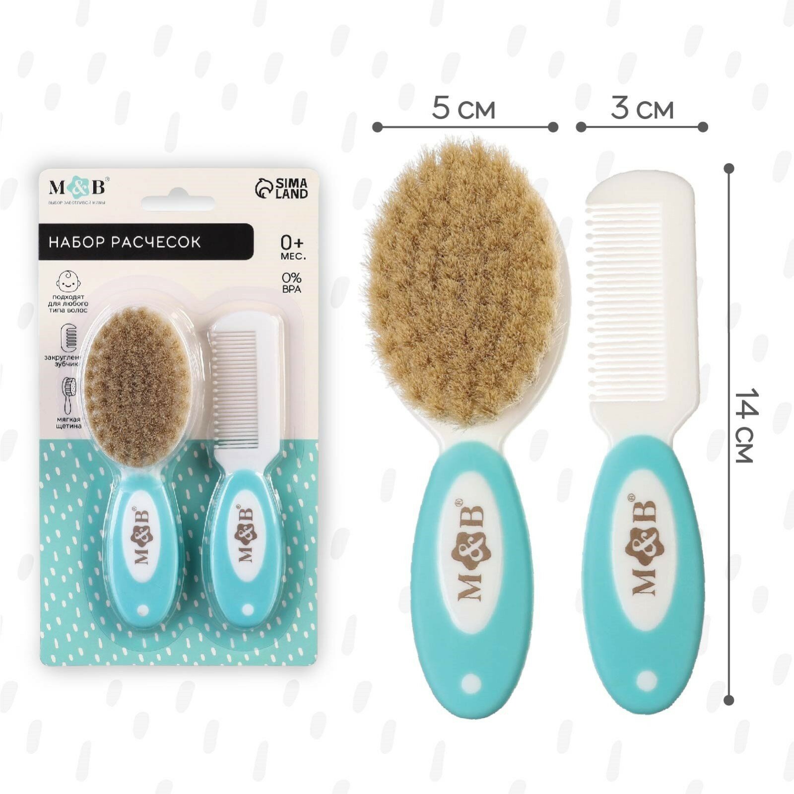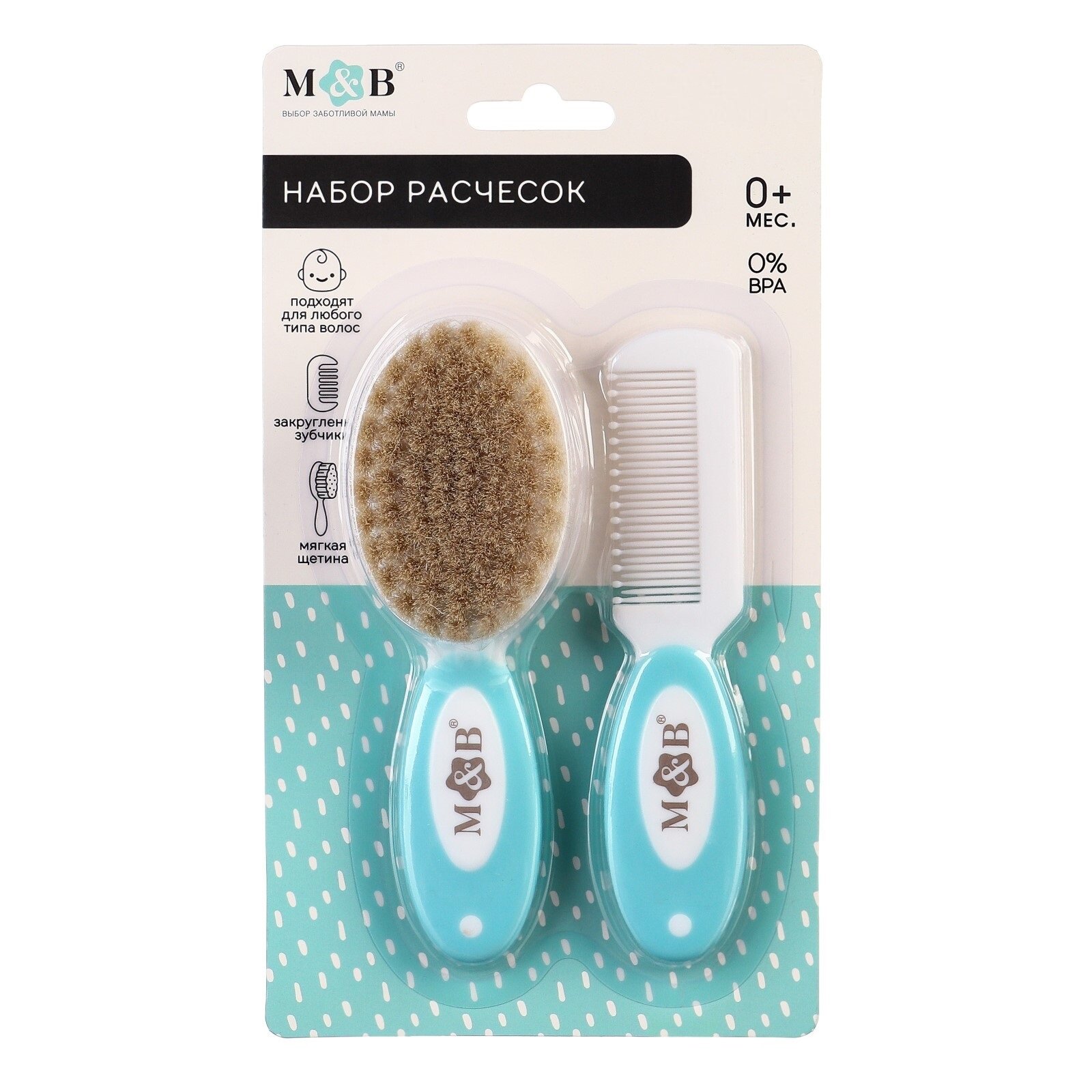 Набор детский для ухода за волосами, расческа и щетка с натуральной щетиной, Mum&Baby информация:
