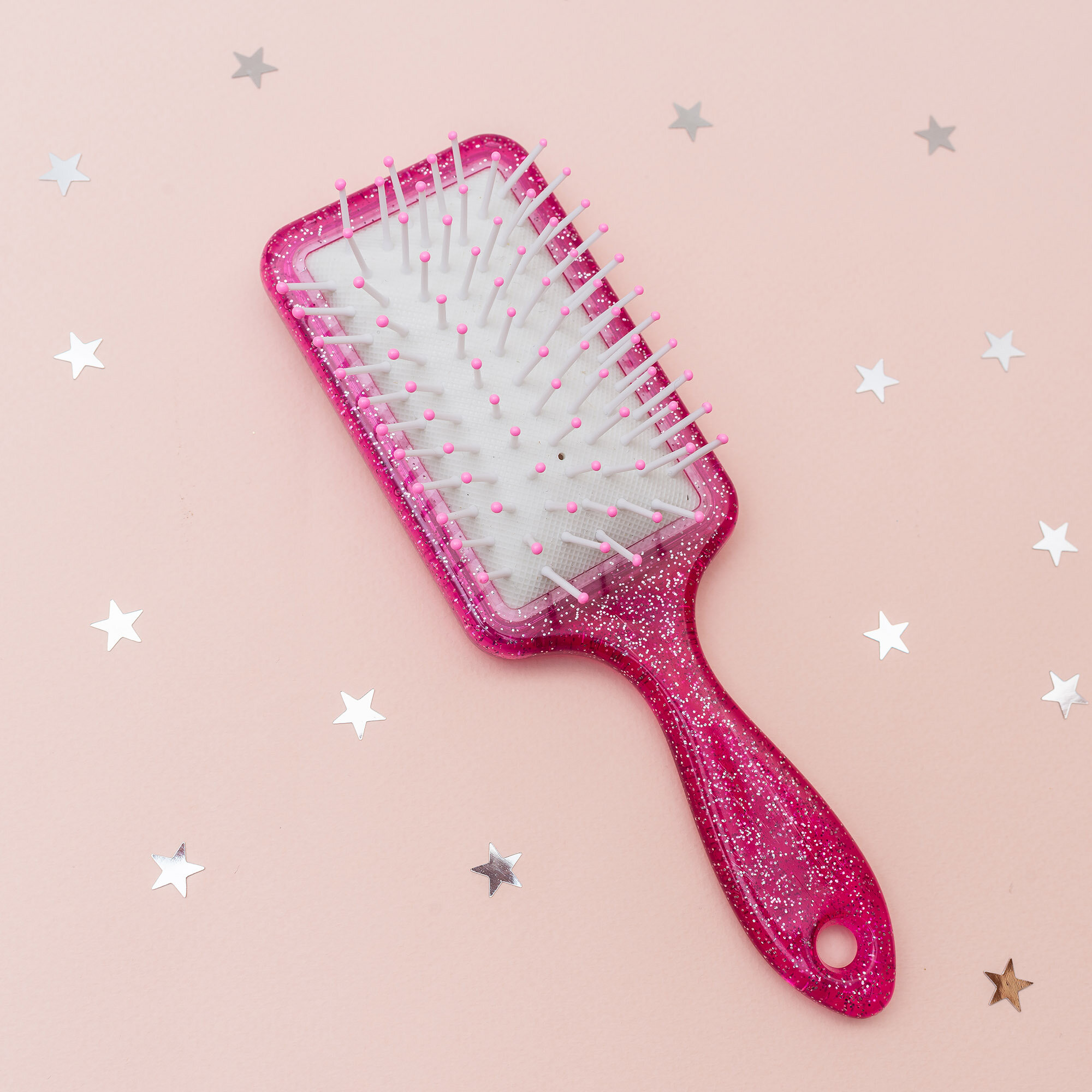Расческа-щетка B&H "Мишка", для девочек, розовая, с блестками информация: