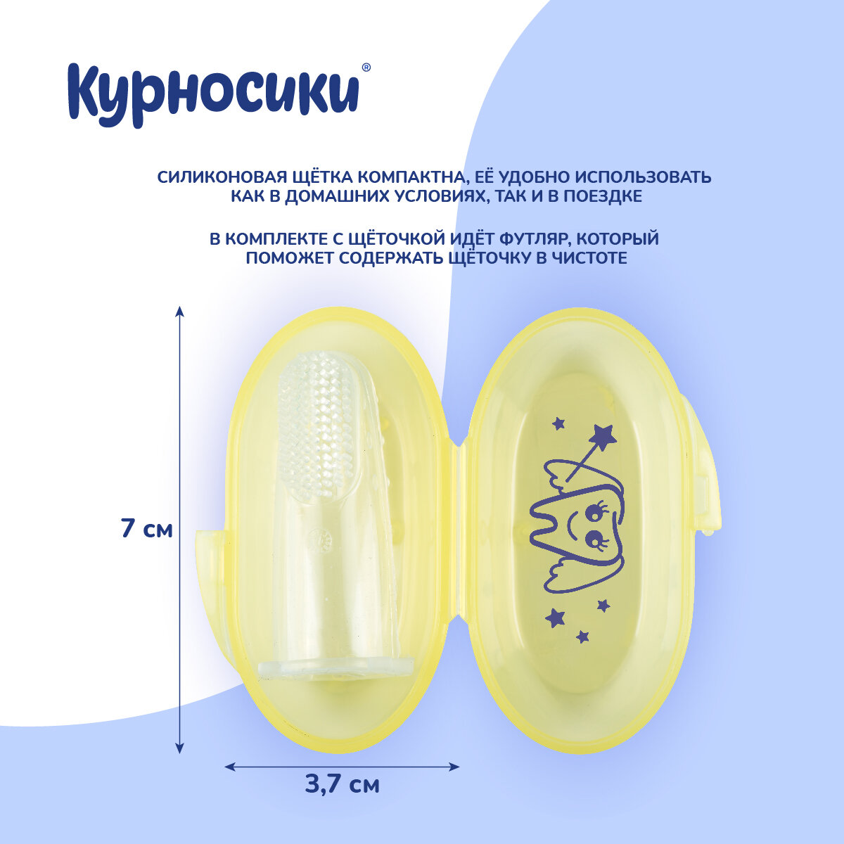 10 цен на Детская зубная щетка Курносики силиконовая, напальчник с футляром желтый, 1 шт