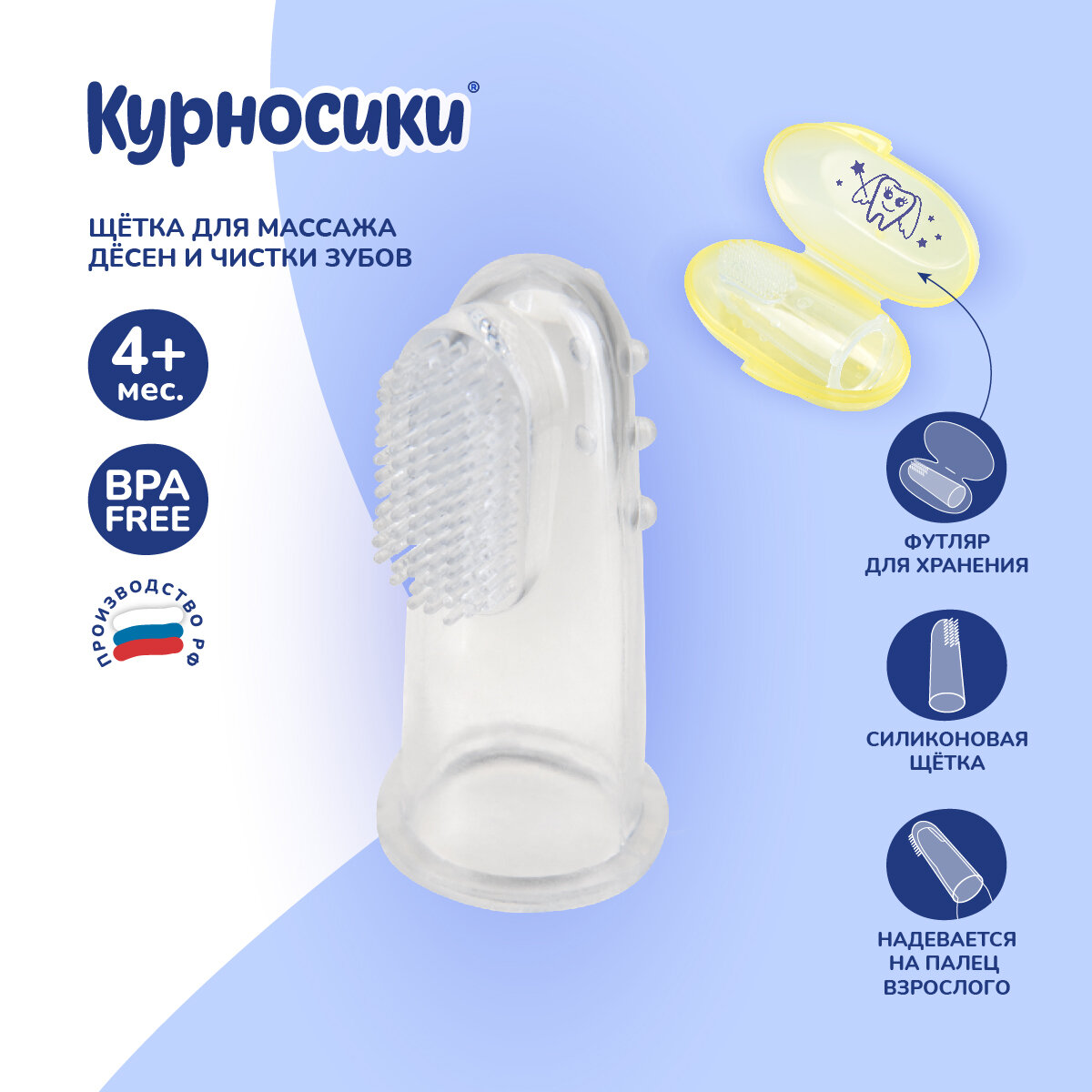 Отзывы на Детская зубная щетка Курносики силиконовая, напальчник с футляром желтый, 1 шт