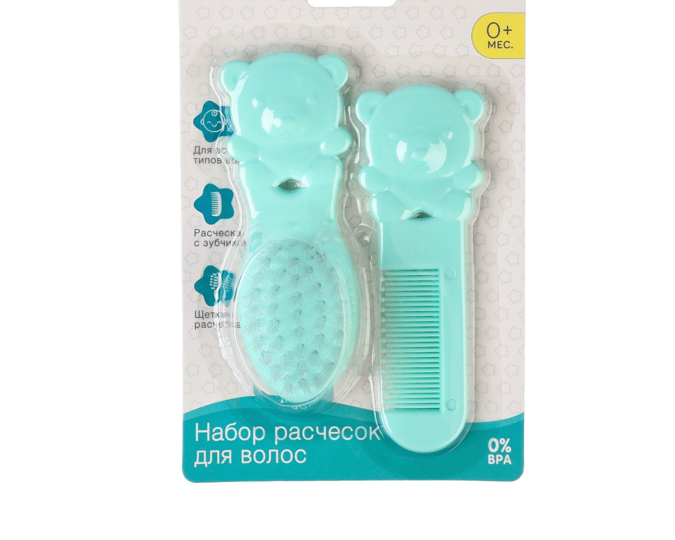 Набор расчесок "Мишки", детский, нежная массажная щёточка + расческа 2 шт. от 0 + мес. информация:
