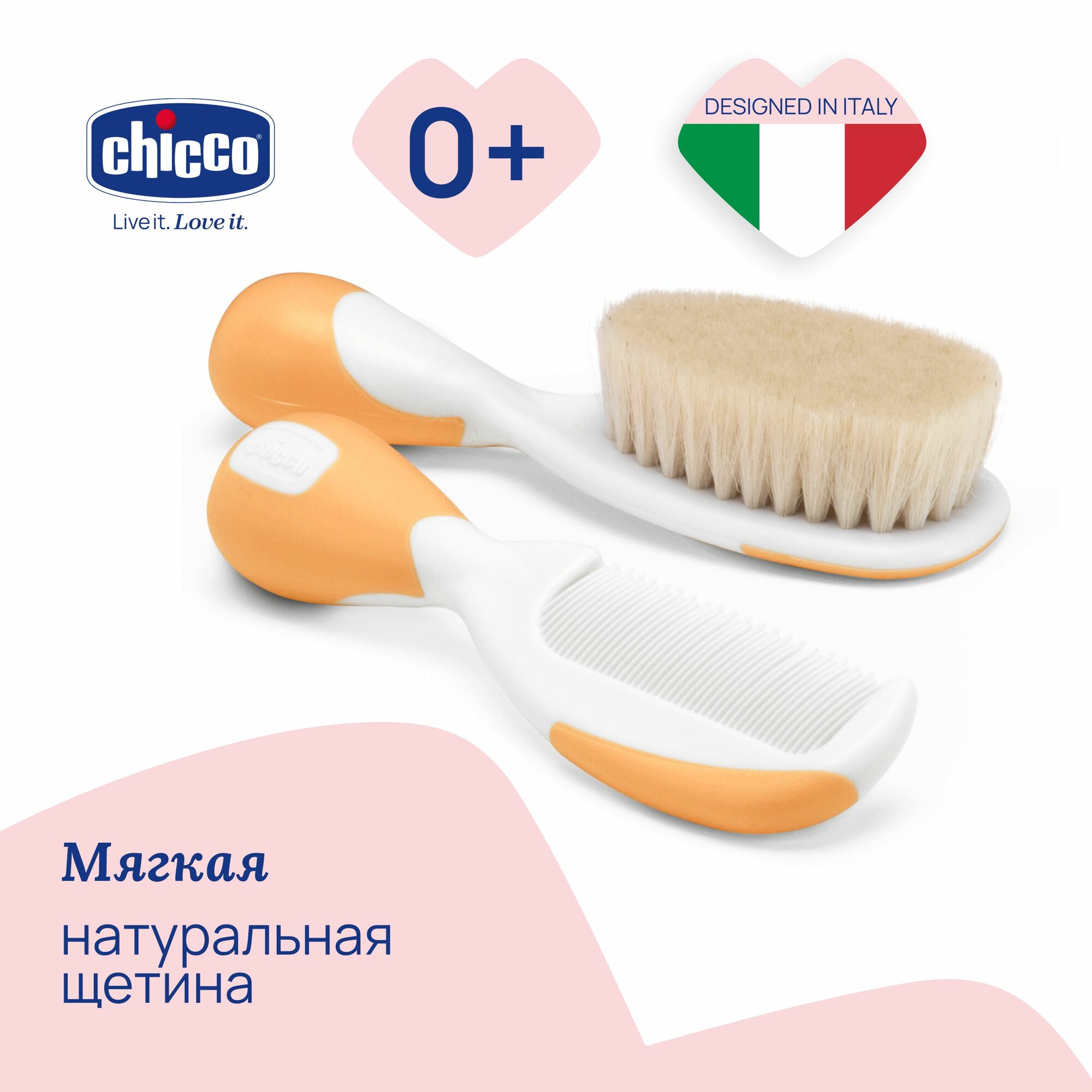 10 цен на Набор детский Chicco расческа и щетка с натуральной щетиной для малышей 0+, оранжевая