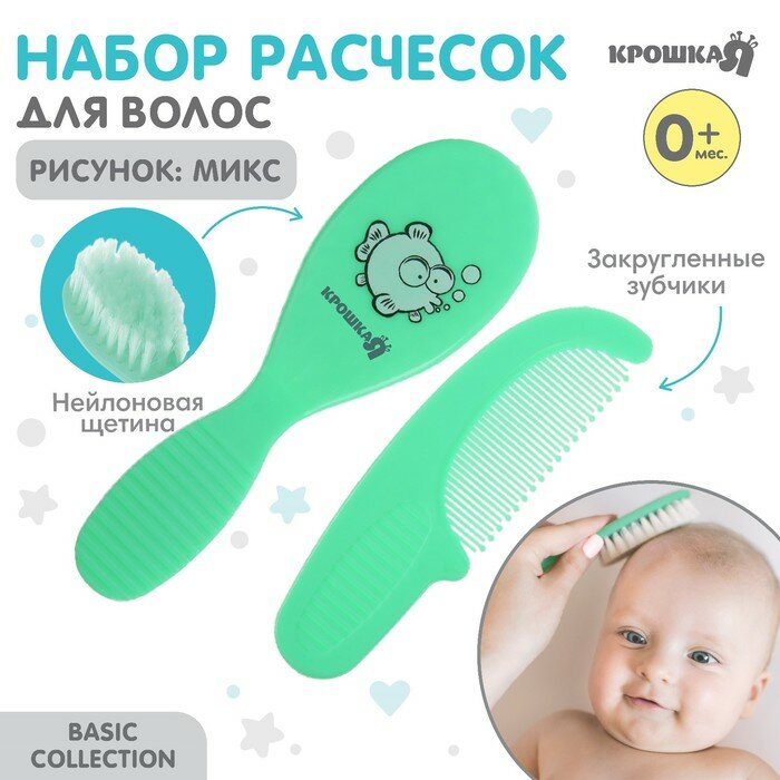 Расчёска детская + массажная щётка для волос, от 0 мес, цвет зелёный, рисунок микс, 1917369 информация:
