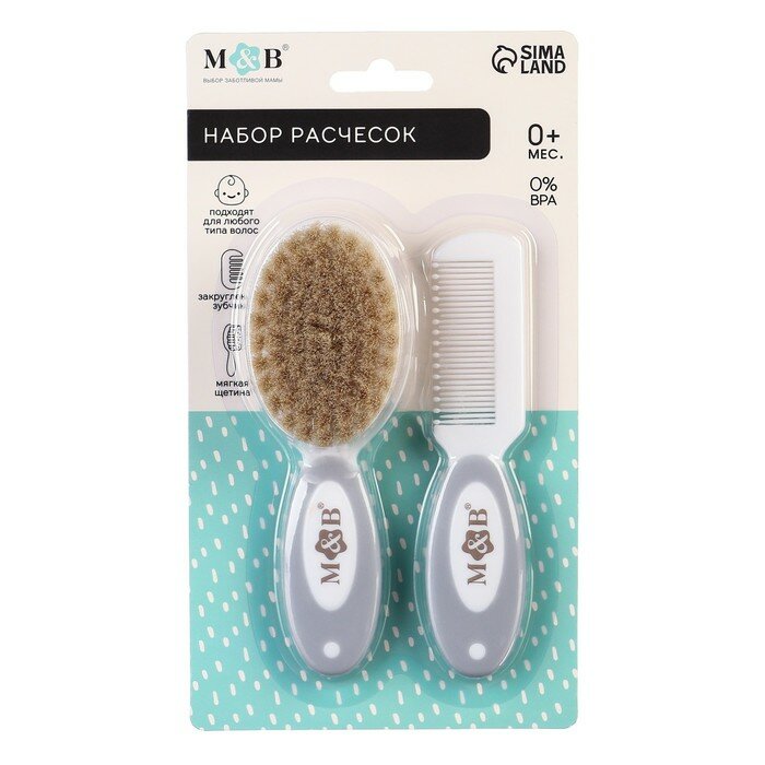 10 цен на Набор детский для ухода за волосами: расческа и щетка с натуральной щетиной , цвет белый/серый
