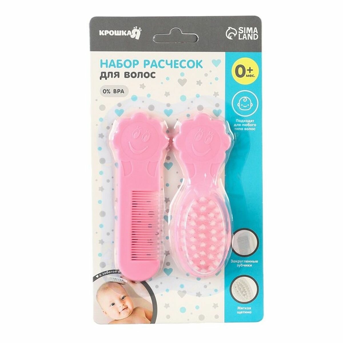 Набор детский для ухода за волосами: расческа и щетка с натуральной щетиной , цвет белый/розовый (1шт.)