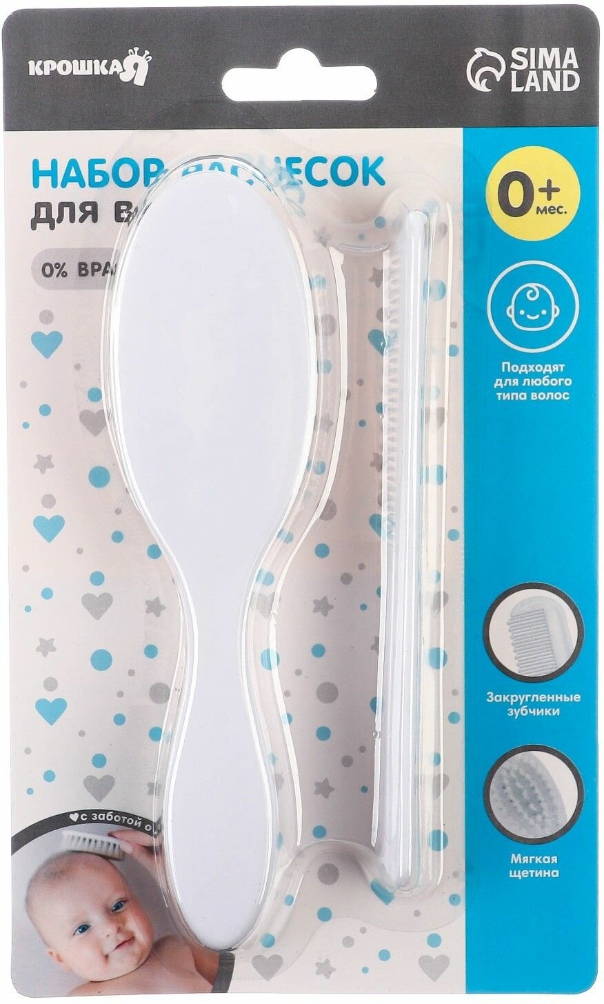 Отзывы на Набор детских расчесок из 2 штук для волос, детская массажная щётка и расческа-гребешок для новорожденных и малышей, цвет белый