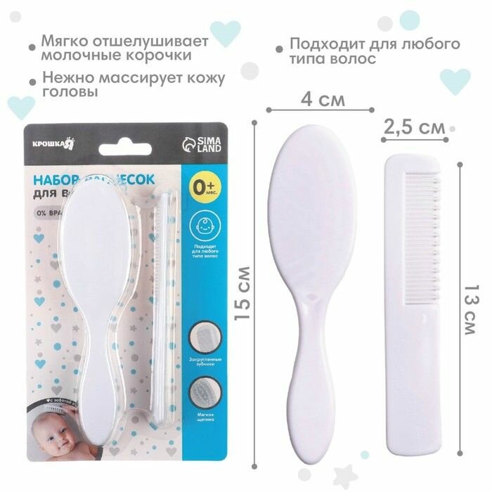 Набор детских расчесок из 2 штук для волос, детская массажная щётка и расческа-гребешок для новорожденных и малышей, цвет белый информация: