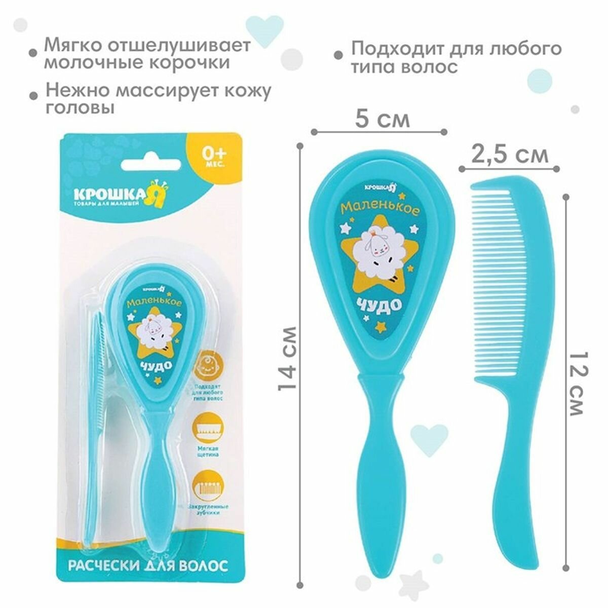 Расчёска детская + массажная щётка для волос "Маленькое чудо", от 0 мес, цвет бирюзовый, 1 наб. информация: