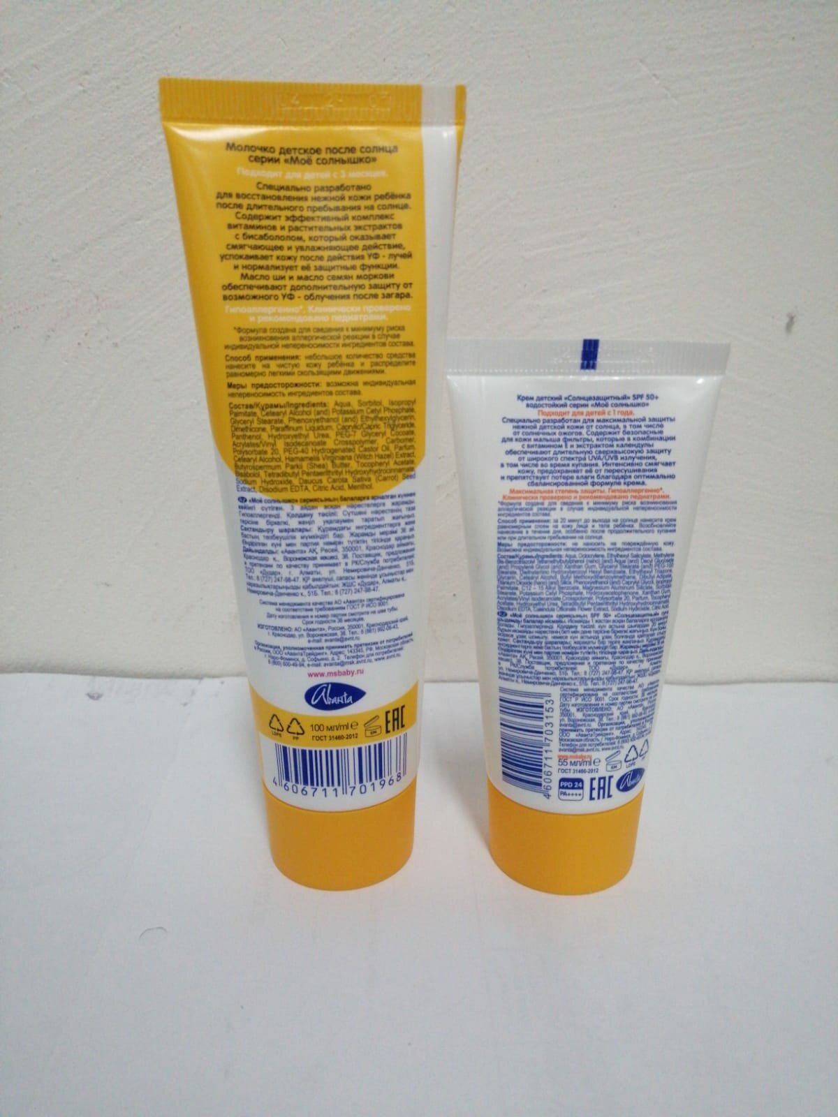 Отзывы на Набор детский после солнца "мое солнышко" молочко с 3х месяцев 100мл+крем SPF50 55мл