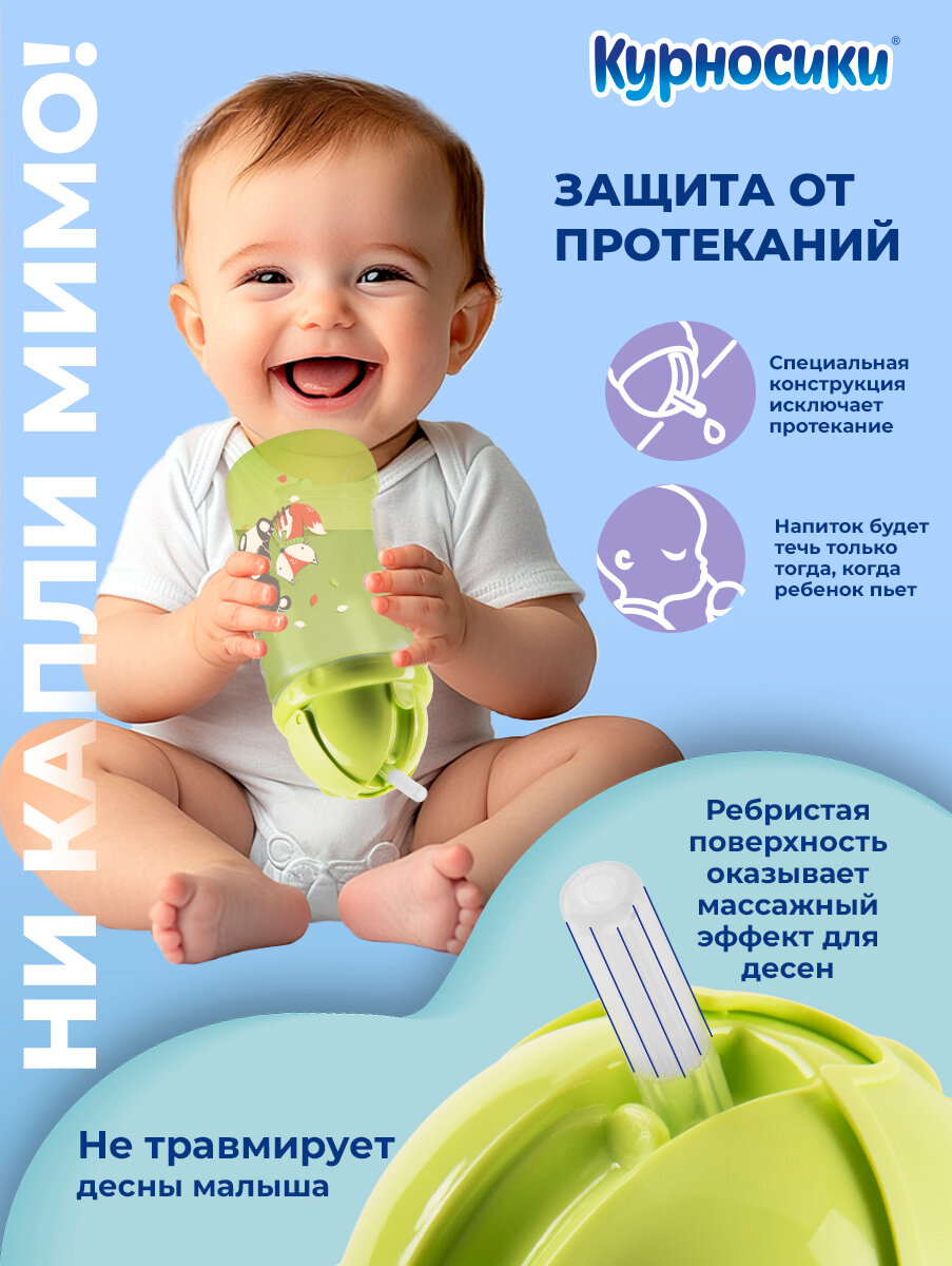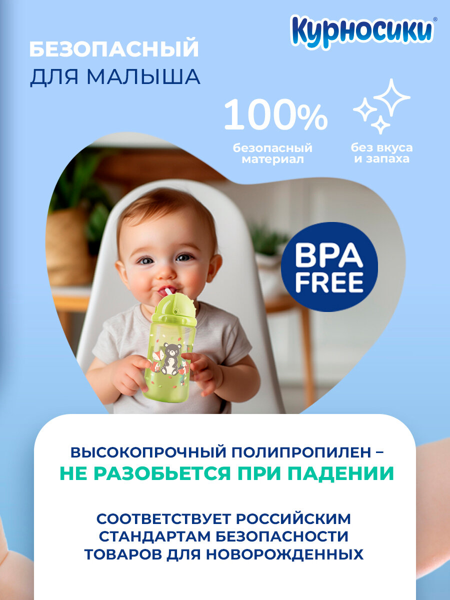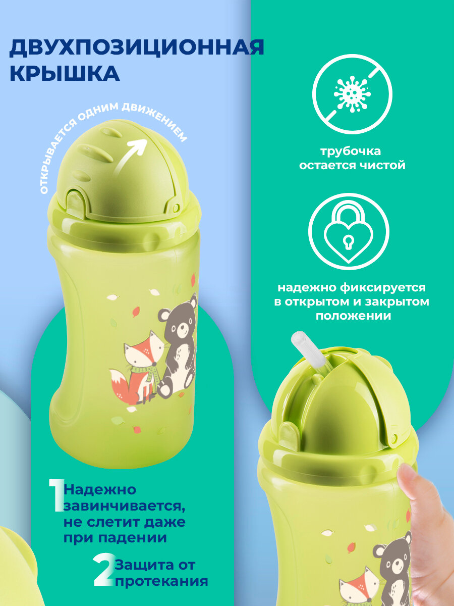 Поильник детский непроливайка Курносики "Лесные звери", с трубочкой, 400мл, от 1 года информация: