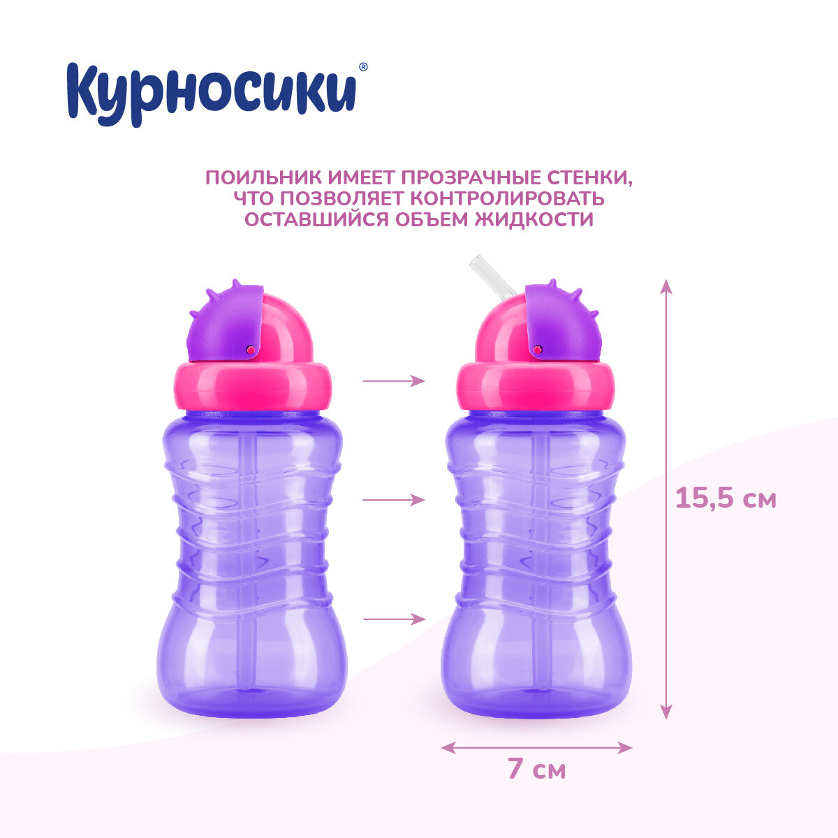 Поильник детский Курносики непроливайка с трубочкой розовый с фиолетовым, 250 мл информация:
